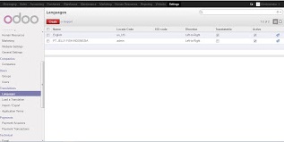 klik setting pada odoo lalu masuk ke menu Languages setelah itu pilih English